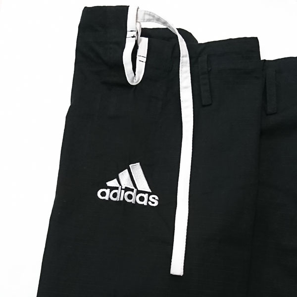 アディダス柔術着 チャレンジ モデル ヴァージョン2.0 adidas BJJ Gi Challenge Model Ver.2.0 上着/Jacket: シングルウィーヴ/ Single weave 綿100% Cotton ズボン/Pants:リップストップ/Rip Stop 綿100% Cotton ズボンウエストひも: 平紐タイプ Waist drawstring: Flat type 防縮加工済み/Pre-shrunk 色/Color:黒/Black *帯は付いていません。 Belt not included. ポイント/Point: 5%! 国内送料無料!(沖縄・離島のぞく) Free Shipping! (on Domestic order excluding Okinawa and other islands.) *軽くて柔らかく動きやすい! *優れたコストパフォーマンス! *前ヴァージョンより耐久性が20%UP。 *カラースティッチ *0.5サイズ刻みの細かいサイジングなのでベストフィットなものを選べます。 *パンツ全体、上着の襟やスリット部のパイピングに軽くて丈夫なリップストップ生地を採用。 *袖口や上着及びパンツの裾の内側もカラーロゴテープで強化及びデコレーション! *肩とパンツにアディダスロゴ刺繍。 肩と腰の刺繍以外はシンプルな軽い道着です!! *Light, soft, and comfortable! *Outstanding cost performance! *+20% resistance than previous version. *Contrast color stitches. *1.5-size is adopted for best fit. *Rip-stop material for pants, lapel, and pipping for lightness and durability. *Colored logo taping inside the sleeves and at the bottom of jacket and pants. *Adidas logos on the shoulder and pants. サイズ目安表/Size Chart: A0: 159cm - 165cm A1: 165cm - 173cm A2: 173cm - 180cm (これらはあくまで目安です。) 実寸サイズ: A0上着-胸幅:約56cm、着丈:約74cm、裄:約76cm、袖口幅:約16.5cm A0ズボン-ウェスト幅:約52cm、ズボン丈:約92cm、股下:約70cm A1上着-胸幅:約58cm、着丈:約77cm、裄:約82cm、袖口幅:約17cm A1ズボン-ウェスト幅:約52cm、ズボン丈:約94cm、股下:約71cm A1.5上着-胸幅:約59cm、着丈:約78cm、裄:約84cm、袖口幅:約17cm A1.5ズボン-ウェスト幅:約52cm、ズボン丈:約98cm、股下:約73cm A2上着-胸幅:約61cm、着丈:約80cm、裄:約85cm、袖口幅:約17cm A2ズボン-ウェスト幅:約54cm、ズボン丈:約101cm、股下:約75cm 柔術衣の重さーA0:約1130~1170g、A1:約1190~1230g、A1.5:約1260~1300g、A2:約1330~1370g ハンドメイドの為、出来上がりサイズ・重さが多少前後する場合がございます。 *お知らせ-A2.5以上のサイズはChampion2.0/Contest2.0モデルにて在庫がある場合がございますので、そちらも合わせてご検討頂ければと思います。 *練習にご着用される場合は問題ございませんが、試合に出場される場合は、各連盟・団体の道着規定に沿って出場することが必要であり、規定が各団体で違う場合もあり、その規定も随時変更になっている可能性がございますので、出場前に主催者にご確認されることをお勧め致します。 *この道着は、海外で製作されており、縫製が荒い(曲がっている、縫い幅が違う等)、縫い直しのある場所がある、製作時に付いたと思われる小さな汚れが付いている場合がございます。競技上問題が無い場合、または洗濯によりその汚れが薄くなるもしくは落ちると見込まれた場合は、ご返品、交換の対象外となることもございますことご了承願います。