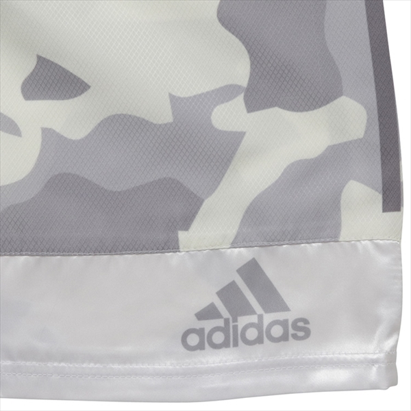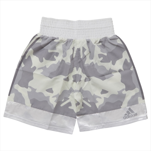 ホワイト迷彩:WhiteCamo ダイアモンドデザイン生地の高級コンバットショーツ/ボクシングトランクスです。 両サイドにアディダスの三本ラインが入ってるタイプです。前ウエストのゴム部分と、後ろの下部にはアディダスのロゴ。腰紐付き Waist string サイズ size : S~XL(アダルトfor adult) 材質 Material:100%ポリエステル/100%Polyester 少し光沢のある白とグレーを基調にした迷彩柄。昇華プリントで剥がれたりしないです。軽くて通気性もよく動きやすい。ウエストは総ゴムです。 サイズ目安(個人差あり、アメリカンサイズ、適応身長) S:165~170cm M:170~175cm L:175~180cm