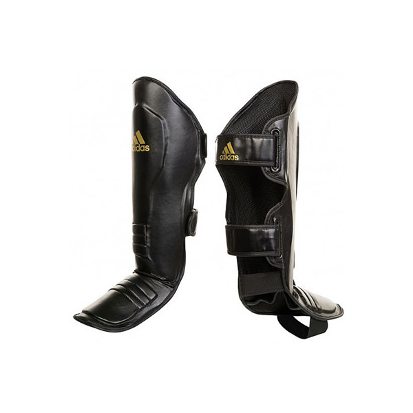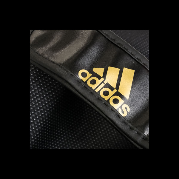 色/Color:ブラック/(メタリック)ゴールド Black/Gold 素材/Material: ポリウレタン、EVA、ナイロン/ Polyurethane, EVA foam, Nylon ポイント/Point: 5% 特徴: *アディダスのハードタイプのレッグガード。 *表面素材は耐久性に優れたPUを採用。 *耐久性のあるPU素材を使用。 *ふくらはぎにかかる2本のベロクロアベルトとしっかりとしたバンドにより最適な安定感と調整を実現。 *ベロクロアベルトはループ式で練習時に剥がれ難く安心感抜群。 *衝撃吸収力の強いパッドがダメージから足や練習パートナーを保護。 *新しく開発したIMF機能による衝撃吸収性と完璧なフィット感。 *隙間が空きがちな足首を伸ばした蹴りの足首の部分もパッドでしっかりカバーすることでケガを予防。 Features: *adidas leg guard flagship model. *Pad made from highly resistant PU cover and padded with injection mold made of super resistant EVA foam, for durability. *Hard and resistant pads provide maximum protection. *Shin guards in very good fit made of high-quality IMF foam with additional protective lip between shin guards and instep. *2 straps with velcro rear closing at back of calf, for a firm tightening and perfect adjustment. 重さ:約250グラム(Mサイズ、片方) 超軽量で動きやすいです!