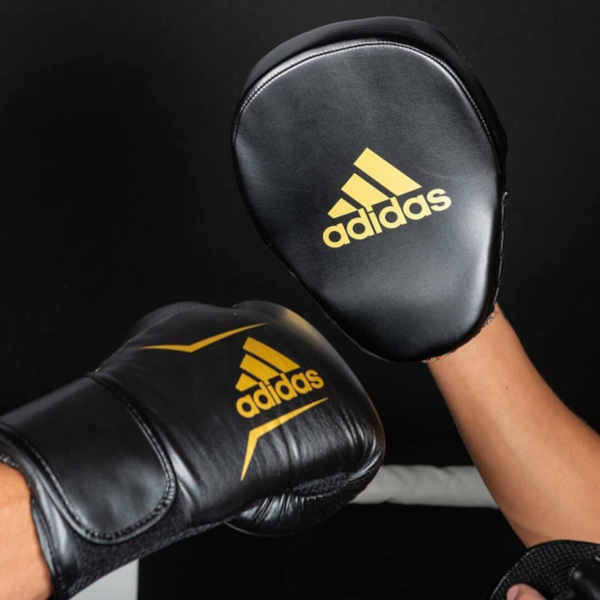 adidas アディダス ボクシンググローブ ジュニア/キッズ用[FLX3.0 Speed 50 model] ブラック/ゴールド adidas Boxing Gloves Kids/Junior FLX3.0 Speed50 Model 色/Color: ブラック/ゴールド Black/Gold 素材/Material:合成皮革/PU Skintex artificial leather ポイント/Point: 5% アディダスが誇るハイコスパモデル。スパーリングやサンドバッグはもちろん、フィットネスにもバッチリ! *耐久性に優れメインテも簡単なFLX 3.0のPU素材採用 *衝撃吸収に優れたマルチレイヤーフォームが拳を保護 *優れたコストパフォーマンス *高いデザイン性 *手の平部分は通気性が優れたオールメッシュ素材で快適 *使いやすく強固なワイド7.5cmベルクロタイプのラバーバンドで確かなフィット感 *継ぎ目のないシームレスな型のパッドが拳と手首をサポート *スパーリングやサンドバッグに、ジム用に是非。 *Easy to maintain FLX 3.0 PU outer shell. *Unique multi-layered form construction for great fist protection.. *Rigid elasticated Velcro closing system allows for quick adjustment while providing strong wrist support. *One-piece mold for optimal fist and wrist support. *Great for fitness as well as punching bags and spars.