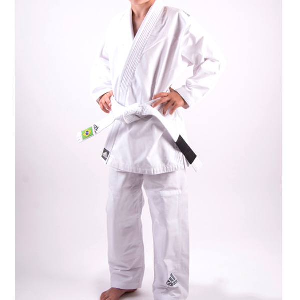 adidas アディダスジュニア/キッズ 柔術着 レスポンス キッズ モデル adidas Jr./Kids BJJ Gi Response Model 上着/Jacket: リップストップ/Rip Stop 綿:ポリエステル 60:40 Cotton:Plyester ズボン/Pants:リップストップ/Rip Stop 綿:ポリエステル 60:40 Cotton:Plyester M2サイズのズボンウエストはゴムバンド式。 M2 with elastic waist band. 防縮加工済み/Pre-shrunk 色/Color:/白White (黒ロゴ) *帯は付いていません。 Belt not included. ポイント/Point: 5% *入門着に最適! *軽くて丈夫!動きやすい! *アディダスのロゴがジャケットの左肩に入っております。パンツは、左前と左後ろのすそから15cm以内にアディダスの刺繍のロゴが入っていおります。 *Best for beginners. *Very light in weight and flexible! *Jacket:Adidas logo on left shoulder. *Pants:logo on front and back. 実寸サイズ: M2上着-胸幅:約52cm、着丈:約66cm、裄:約65cm、袖口幅:約15.5cm M2ズボン-ウェスト幅:約30-36cm(ウエストはゴムと紐)、ズボン丈:約82cm、股下:約59cm ハンドメイドの為、出来上がりサイズ・重さが多少前後する場合がございます。 *この商品は在庫限りとなります。