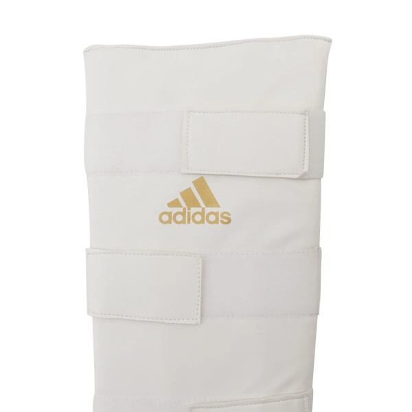 アディダス NEW レッグガード (レガース) JAPANモデル adidas NEW Leg Guards (Shin Instep Guards) JAPAN Model 色/Color: ホワイト(ゴールド)/White(Gold) 素材/Material: EVA, EPE ポイント/Point: 5% *ムエタイ、キック、空手用のレガース。 *5センチ幅の3本のベルクロでズレを防ぎます。 *表面素材は耐久性に優れたPUを採用。 *パッドは2重構造で吸収力をアップしたしっかりとしたEVAフォームを採用。 *Ideal for Muay Thai, Kickboxing and Karate. *5cm wide three sturdy Velcro fasteners. *Pad made from highly resistant PU cover. *Padded with 2 layered mold made of super resistant EVA foam, for durability.