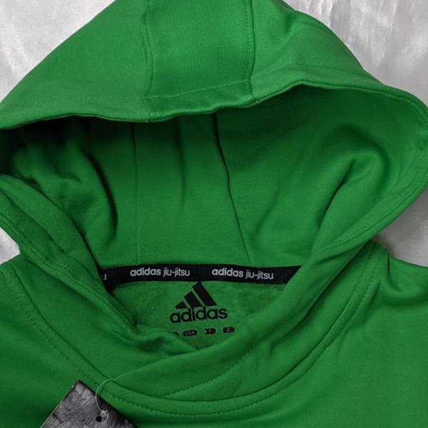 アディダス ジュニア/キッズ パーカー jiu-jitsuモデル adidas Junior/Kids Hoodie jiu-jitsu model 素材: 綿 80%/ポリエステル 20% Material: 80% Cotton/20% Polyester 色/Color: ブラジリアングリーン/Brazilian Green ポイント/Point: 5% 非常にレアなブラジリアン柔術モデルのキッズ/ジュニア パーカーです! 実寸サイズ: 128サイズ-着丈(襟下中央〜すそ):52cm、肩幅:37cm、身幅(右脇下〜左脇下):43cm、袖丈:45cm 140サイズ-着丈(襟下中央〜すそ):56cm、肩幅:38cm、身幅(右脇下〜左脇下):45cm、袖丈:48cm 152サイズ-着丈(襟下中央〜すそ):59cm、肩幅:39cm、身幅(右脇下〜左脇下):47cm、袖丈:55cm 164サイズ-着丈(襟下中央〜すそ):62cm、肩幅:40cm、身幅(右脇下〜左脇下):49cm、袖丈:62cm (平置きして測っています。多少の個体差はありますので平均値です。)