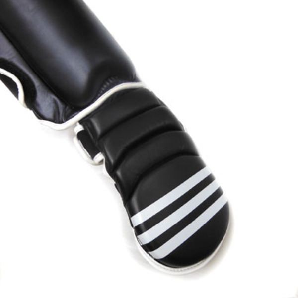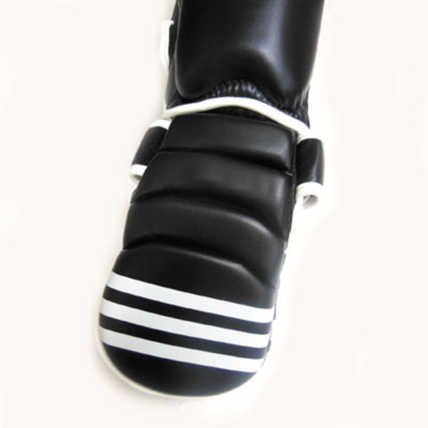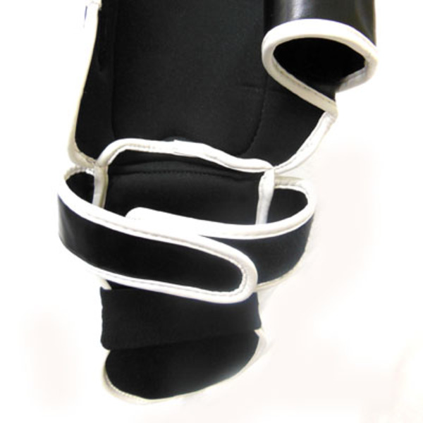 色/Color:黒白 Black/White 素材/Material: ポリウレタン、EVA、ナイロン/ Polyurethane, EVA foam, Nylon ポイント/Point: 5% 特徴: *耐久性の高い合成皮革とフォームを採用。 *ふくらはぎと踵にかかる3本のベロクロアベルトとしっかりとしたバンドにより最適な安定感を実現。 ふくらはぎの2本のベロクロアベルトはループ式で練習時に剥がれ難く安心感抜群。 *インナー素材により汗や湿気による不快感や滑りを予防。 *ネオプレン素材採用による更に高い耐久性。 *射出発砲成形により足にベストフィット。 *隙間が空きがちな足首を伸ばした蹴りの足首の部分もパッドでしっかりカバーすることでケガを予防。 Features: *Outer shell in PU material and resistant foam for better durability. *3 Velcro closure straps and rigid band strap closure for optimal support. *Inner material prevents moisture and keep inside dry and comfortable. *Neoprene fabric. *Injected foam mold for the best fitting. サイズ目安M-size スネ長さ(中央)/Shin Length(Center):33cm、インステップ(甲)長さ14(足先~甲中央付近)~20cm(足先~足首上まで)ふくらはぎ上部分周り35~45cm*詳しくは図をご覧ください